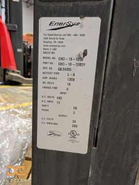 Enersys | SerialNo: GE34385 | Capacity: 1200 AH | Voltage: 36 Volt | Make: Enersys | Model: EH3-18-1200Y | Color: Grey | Input Voltage: 480V 3-Phase | Output Amps: 200A |