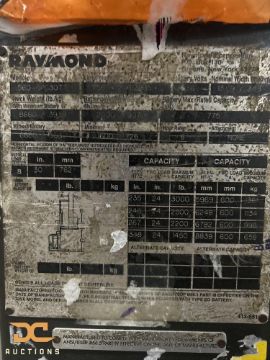 Raymond 560-OPC30TT 2012 | SerialNo: 560-12-B13985 | Attachment Type: Forks | Capacity: 3,000 lbs. | Carriage Class: Type E | Fork Length: 42" | Fuel: Electric | Height Raised: 360" | Height Lowered: 146" | Voltage: 36 Volt | Deadman Hours: 14994.0 | Make: Raymond | Model: 560-OPC30TT | Year: 2012 | Color: Red/Black