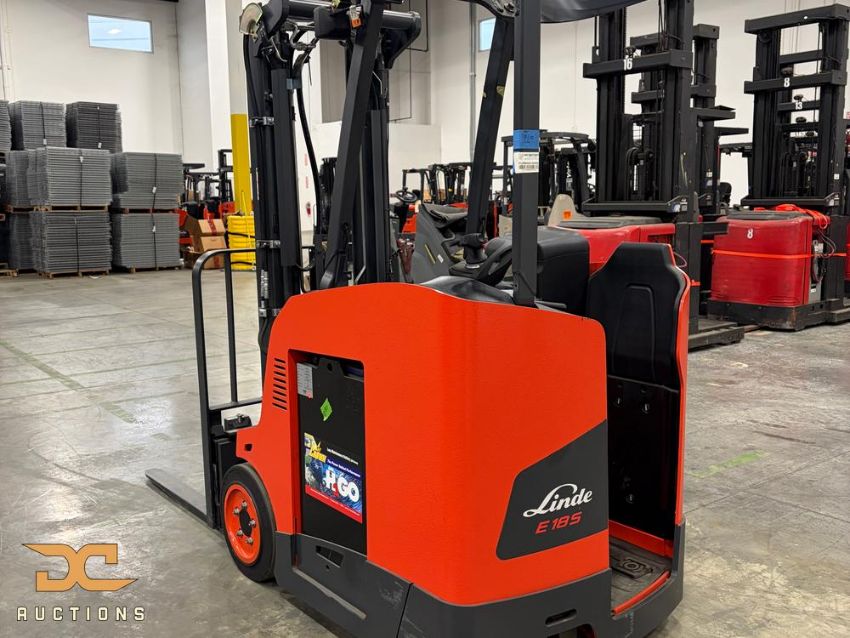 NEW (1) 2023 Linde E18S Forklift *Battery Included* Make: Linde Model: E18S Year: 2023 Color: Red/Black Capacity: 3265 Lbs Voltage: 36 Volts Fuel: Electric Tire: Solid Height Lowered: 88" Height Raised: 189" Carriage Class: 3 Stage Fork Length: 42" Hours: 5.5 Weight with Battery: 9,507 lb MSRP: $45,000 Loading Fee: $250 Linde E18S electric forklift with 3,265 lb capacity and 36-volt power system. Features 42" forks on a 3-stage carriage, lifting from 88" to 189", with solid tires supporting a total weight of 9,507 lb including battery. Comes with battery and charger, and has 5.5 hours of operation.