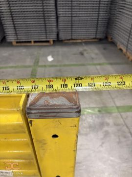 Global Industries 3-groove guardrail measuring 116" long by 15" wide, finished in yellow. Equipped with a 3-hole bolt connection for floor-mounted installation along aisles, equipment zones, or rack lines. Designed to provide physical separation and impact protection in warehouse and industrial traffic areas.