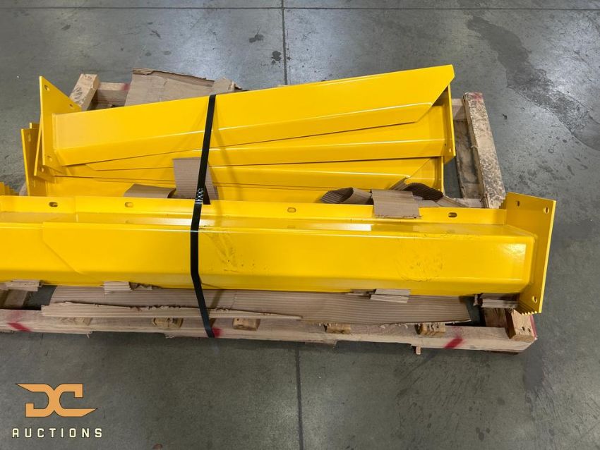 Yellow dock door guards measuring approximately 6" x 7-1/2" x 48". Designed for vertical mounting at dock door jambs to protect door frames and surrounding structure from trailer and forklift impact. Commonly installed in loading dock environments to reduce structural damage in high-traffic loading zones.