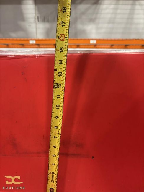 Plastic storage tote measuring 29" long x 19" wide x 15" high, finished in red. Durable molded walls provide structural integrity for stacking or transport. Large footprint accommodates bulk parts, supplies, or materials on shelves, carts, or pallets.