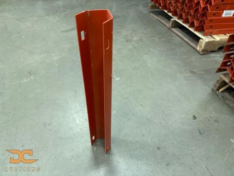 Interlake bolt-on post protector standing 24" tall, designed to wrap and fasten around rack uprights for impact protection at floor level. This protector is commonly installed at aisle-facing columns to absorb forklift contact before it reaches the upright. A standard safeguard used to extend rack life and reduce repair costs in high-traffic warehouse areas.