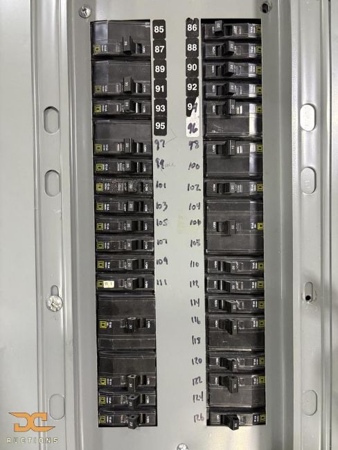 Square D breaker panel model MHC35S configured for up to 42 breakers, rated at 240 volts and 400 amps. Compact 36" tall enclosure suited for space-constrained electrical rooms. Used for branch circuit distribution in industrial and commercial installations.