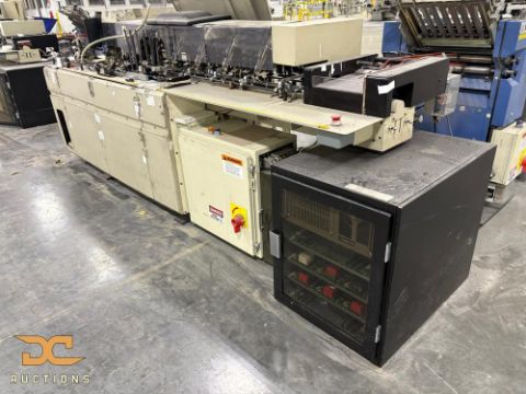 Bell and Howell insert system with control panel, measuring 131" x 36" x 64". Designed as part of a paper processing workstation for inserting or document handling workflows. Suitable for integration projects or parts use where Bell & Howell components are required.