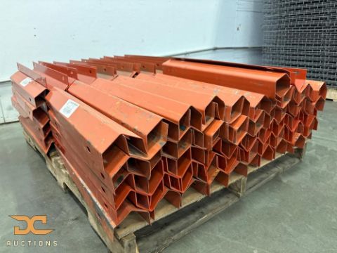 Interlake bolt-on post protector standing 24" tall, designed to wrap and fasten around rack uprights for impact protection at floor level. This protector is commonly installed at aisle-facing columns to absorb forklift contact before it reaches the upright. A standard safeguard used to extend rack life and reduce repair costs in high-traffic warehouse areas.