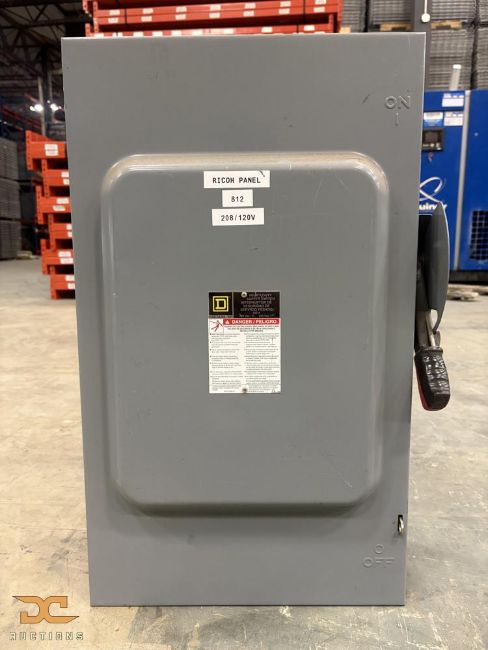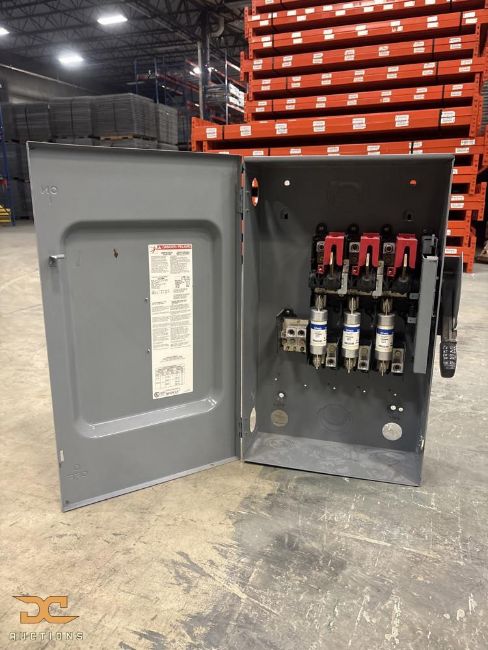 Square D H324N heavy duty fusible safety switch. Designed for disconnecting and controlling electrical power in commercial or industrial environments. Commonly used within facility electrical systems.